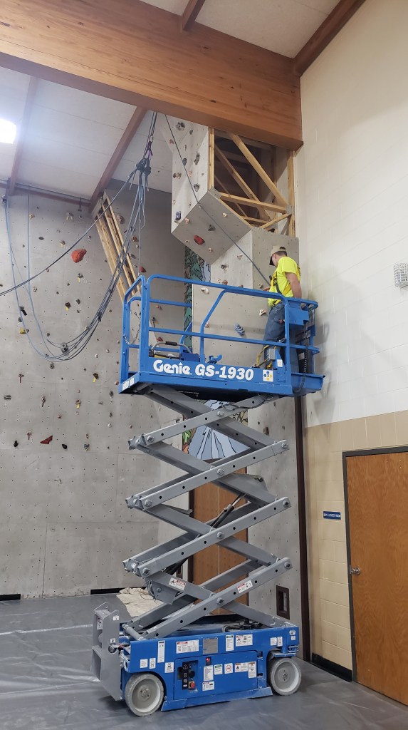 Stephenson, MI – AKRO provides safety, fall protection and climbing wall system inspection. This climbing wall inspection included observations of the hand-held anchorage, belay system anchorage connections, attachment of climbing wall panel to structure, and a written inspection report. Panels were removed to determine the anchorage of all elements of the walls.