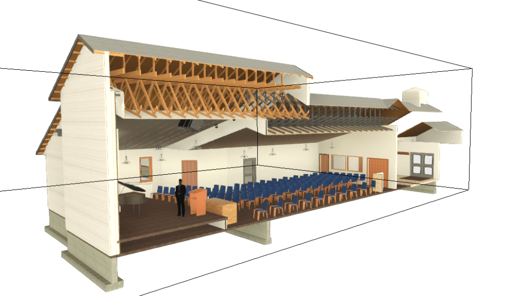 Country Bible Church, Wallace, MI – AKRO designed and engineered the expansion of this church sanctuary to double the seating capacity, add larger ADA compliant stage, and accommodate new technologies. AKRO worked closely with the truss manufacturer to provide a unique roof framing solution that maximized sight lines and acoustical performance. Ground breaking is expected May 2021.